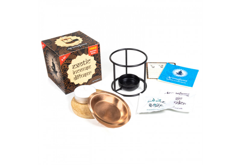 Le diffuseur d'encens exotique atteint la température adéquate pour la diffusion d'arôme des briques d'encens Aromafume. Ensemble, ce Diffuseur et les briques d'encens forment le wat le plus efficace et le plus propre de la diffusion des arômes agréables. Aucune toxine n'est émise et il n'y a pas de production de cendres ou de fumée !