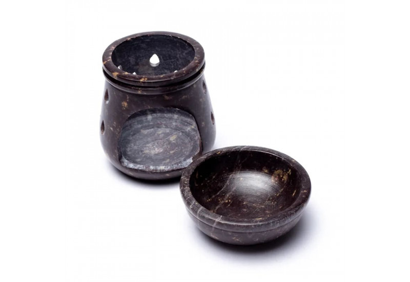 Belle lampe d’arôme en pierre à savon (stéatite) polie, de qualité lourde. La pierre à savon (stéatite) est un produit naturel, qui peut être parfois sombre, clair ou marbrée. Le réservoir d'huile peut être enlevé pour être nettoyer facilement.
