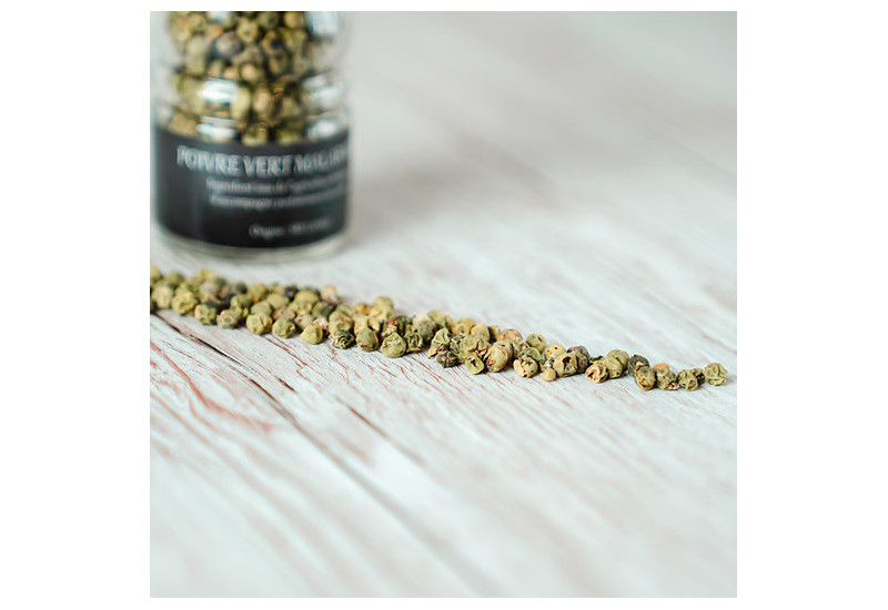 Ce poivre vert de Malabar bio* possède une saveur fraîche, avec un goût agréablement piquant.