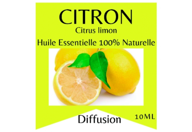 Huile Essentielle de Citron 100% pure, naturelle et chémotypée. Citron (citrus limonum L): parfum frais d’agrume, subtil et tonique source d’énergie et de bien-être. Utilisable en diffusion atmosphérique avec tous nos diffuseurs pour un moment de détente ou une séance d'aromathérapie.